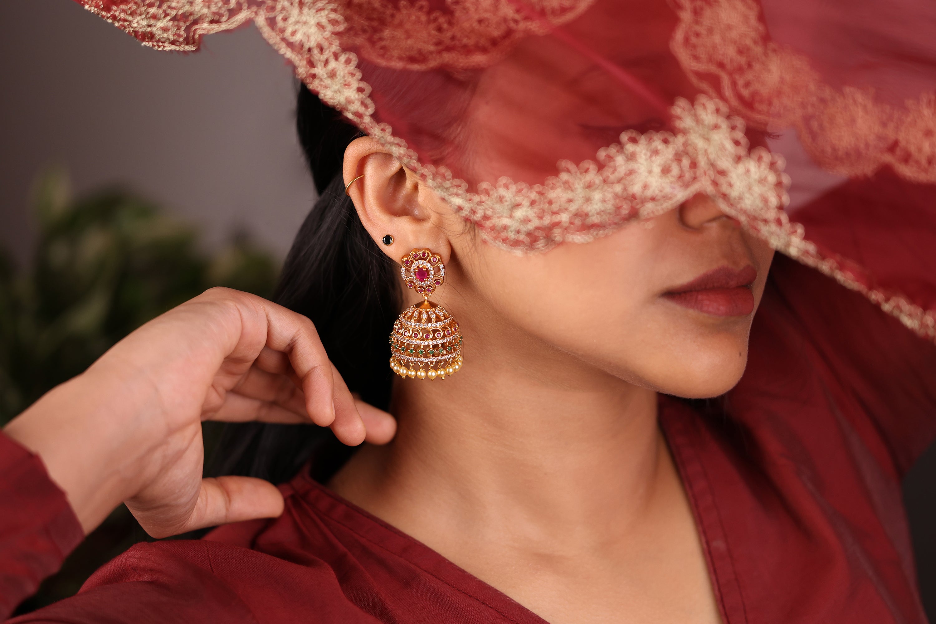 Lakshmi Stone Pendant with Jhumka