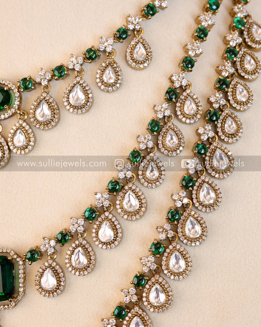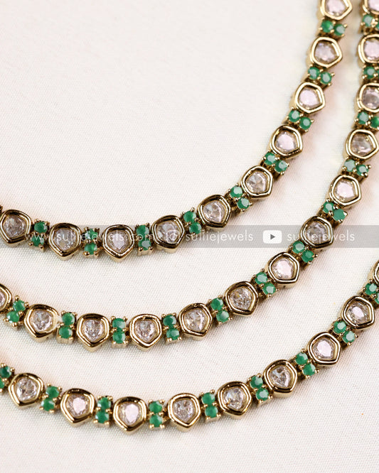 3 Layer Emerald Stone Necklace with Earring