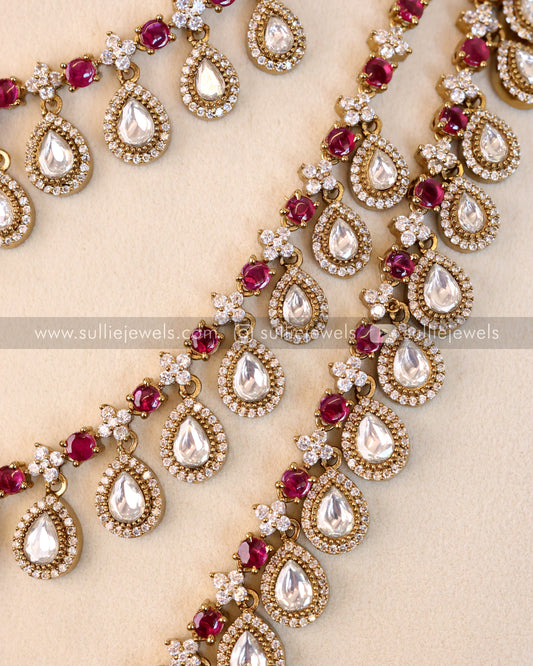 Floral Premium Ruby & White Stone Necklace with Mint beads