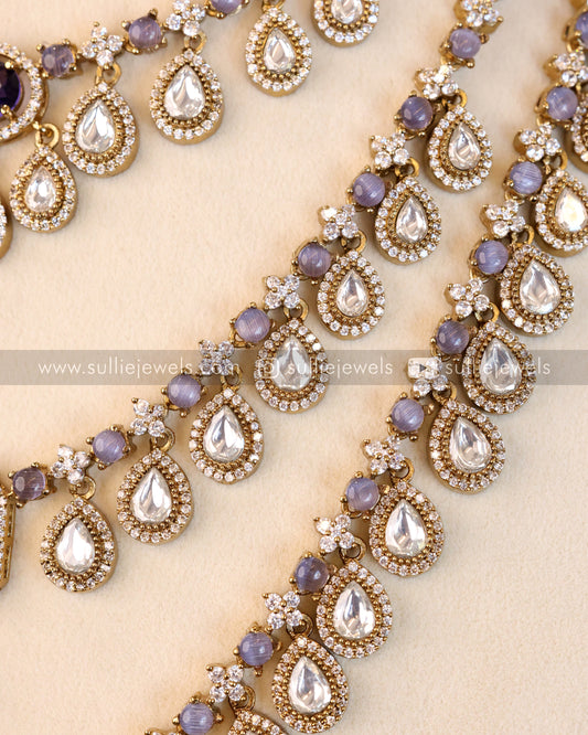 3 layered Moissanite Victorian Necklace with Earring