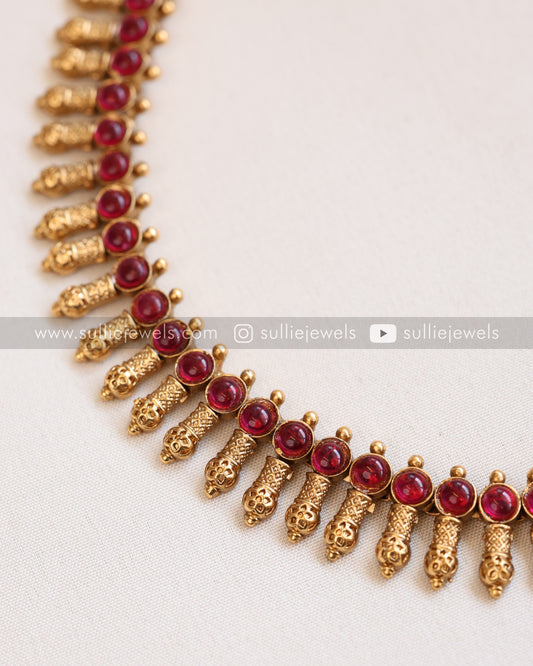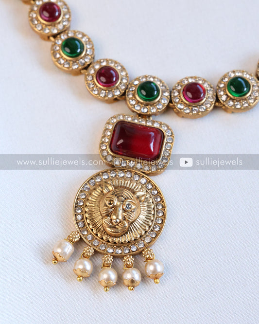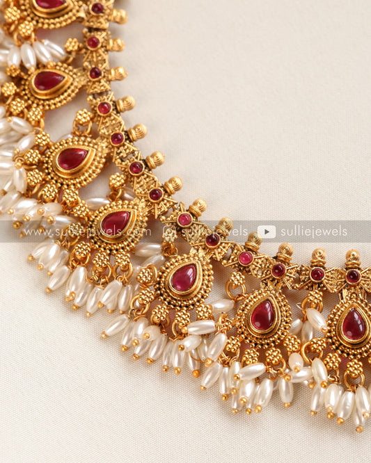 Floral Premium Ruby & White Stone Necklace with Mint beads
