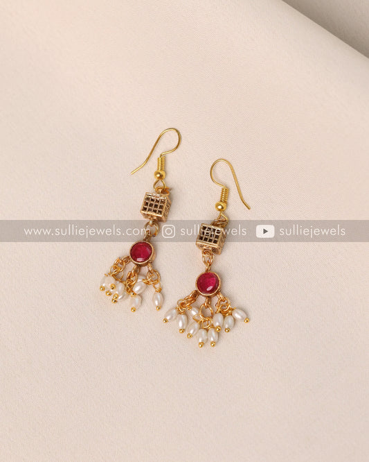 Raindrop Premium Stone Necklace with Earring - Ruby