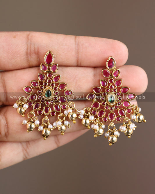 Ruby & White Kemp Mango Long Chain/ Maaga Haaram with Jhumka