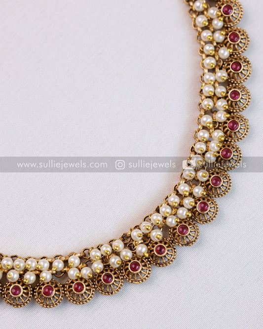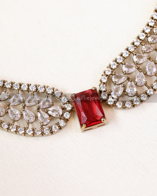Floral Premium Ruby & White Stone Necklace with Mint beads