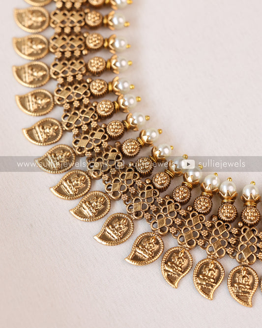 Sullie Basic - Antique Gold Mango & Pearl Necklace with Stud