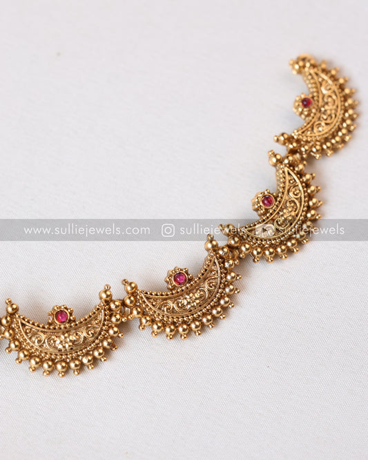 Sullie Basic - Ardha Chandra Gold Beads Ruby Necklace with Stud