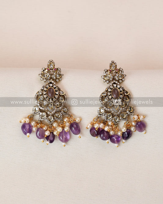 Bridal Stone Necklace Violet Beads with Earring