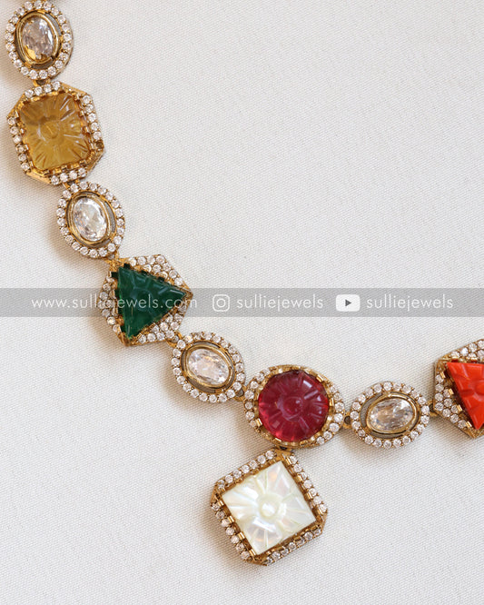 Carved Multicolour Stone Necklace with Earrings