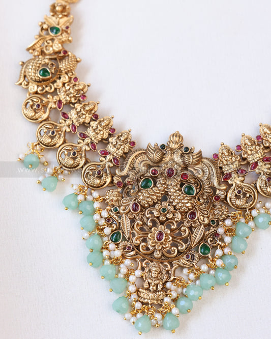 Sullie Basic - Peacock Lakshmi Necklace with Mint Beads and Earrings