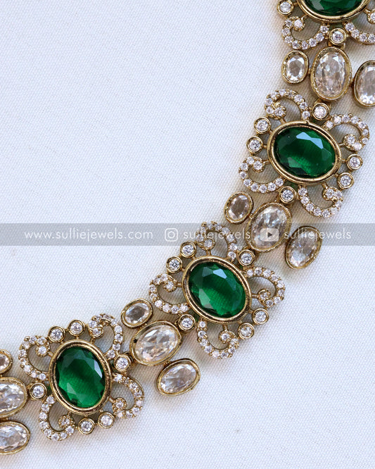 Floral Premium Ruby & White Stone Necklace with Mint beads