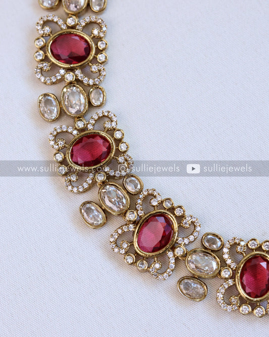 Floral Premium Ruby & White Stone Necklace with Mint beads