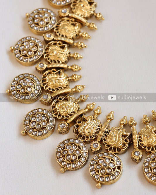 White Premium Heavy Kemp Peacock Long Chain/Haram with Earring