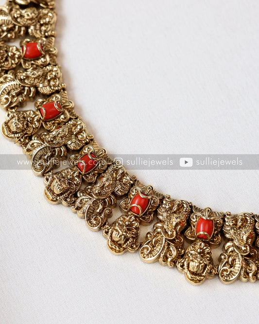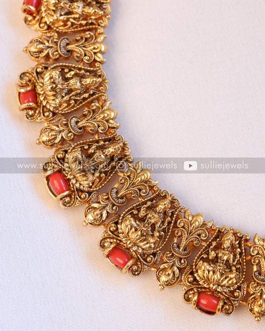 Coral Stone Lakshmi Necklace with Earring