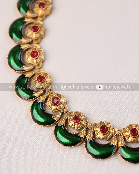 Crescent Green Necklace with Stud