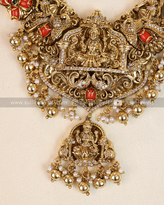 Coral Stone Premium Lakshmi AD Necklace with Earring