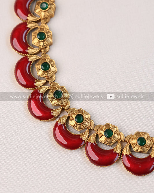 Floral Premium Ruby & White Stone Necklace with Mint beads