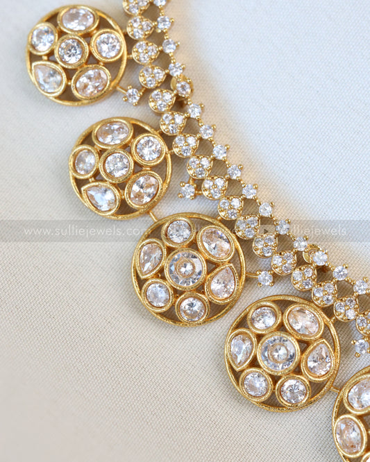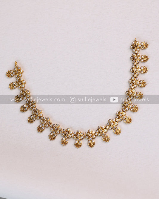 Floral Premium Ruby & White Stone Necklace with Mint beads