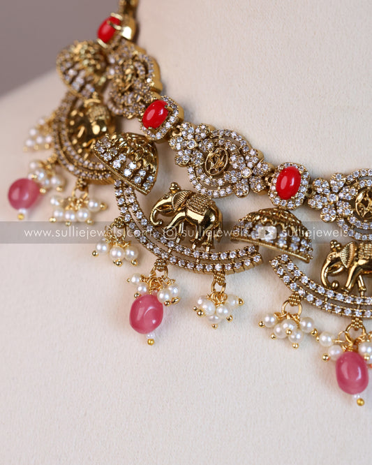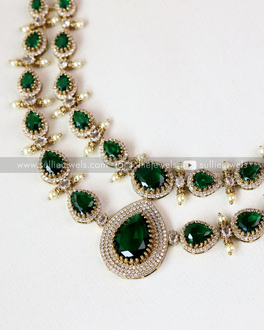 Floral Premium Ruby & White Stone Necklace with Mint beads