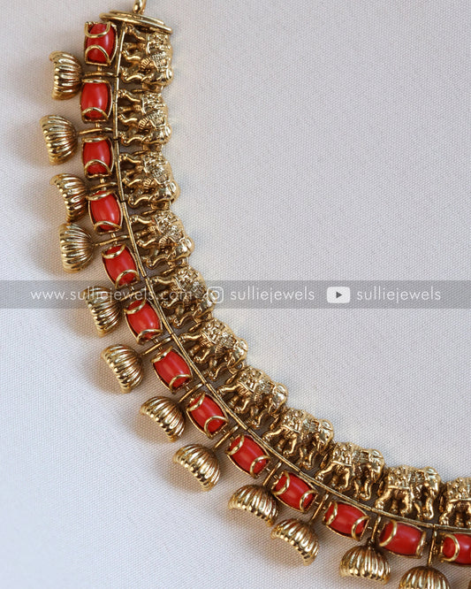 Elephant Coral & Stone Necklace with Earring