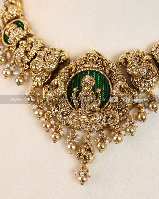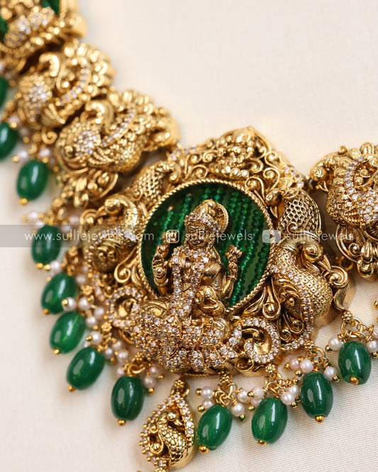 Goddess Designer Premium Necklace with Earring - Green Beads