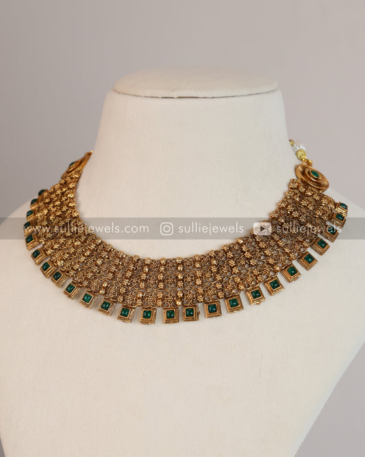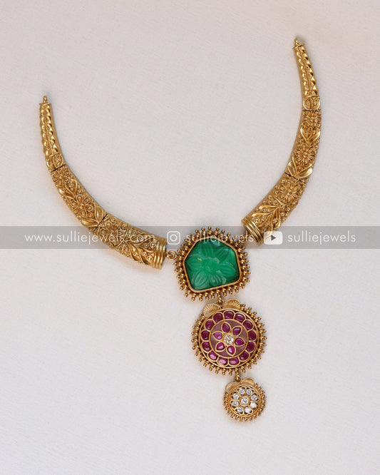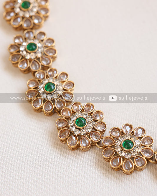 Floral Premium Ruby & White Stone Necklace with Mint beads