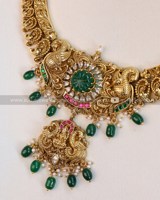 Lakshmi Designer Emerald Long Chain / Haaram with Earring