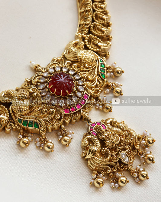 Lakshmi Designer Ruby Long Chain / Haaram with Earring