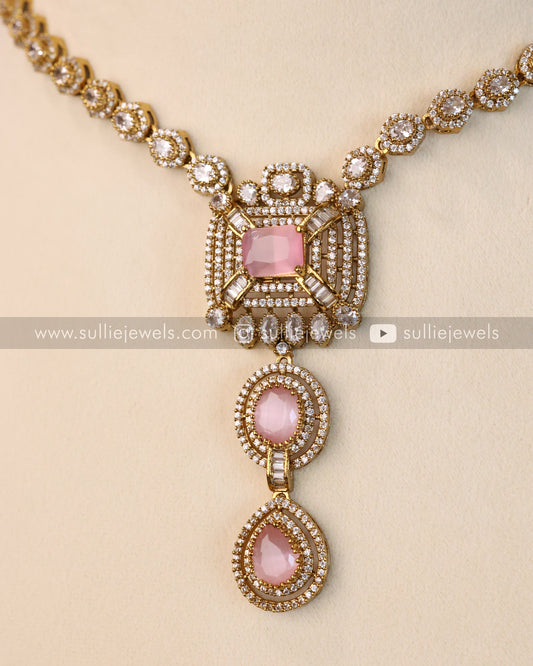 Pastel Pink Centre Stone Necklace / Choker with Stud
