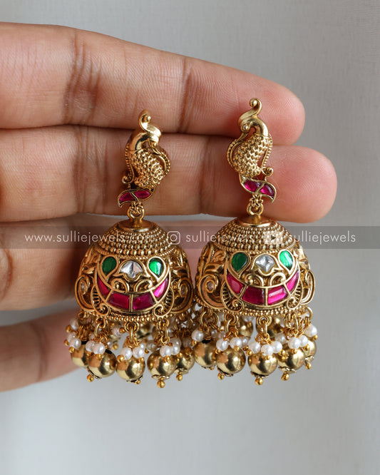 Peacock Lightweight Matte finish Necklace with Jhumka - No Idol