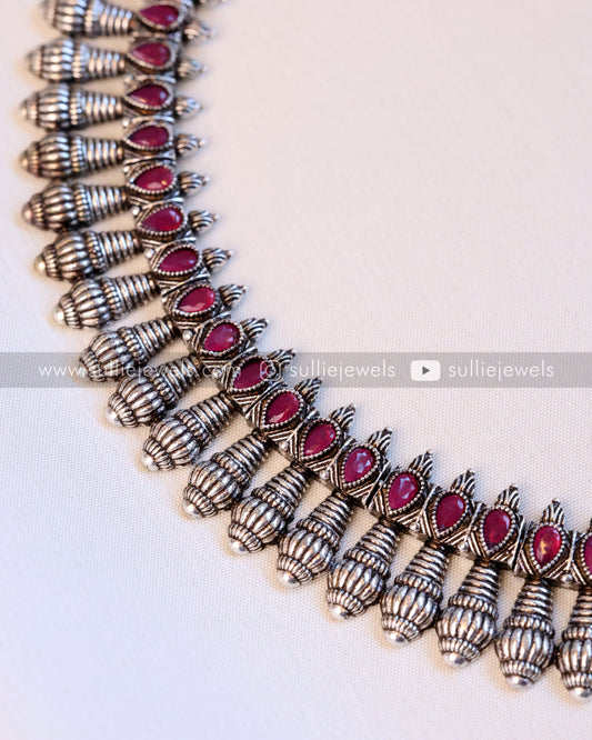 Pink Stone Oxidised Necklace with Stud