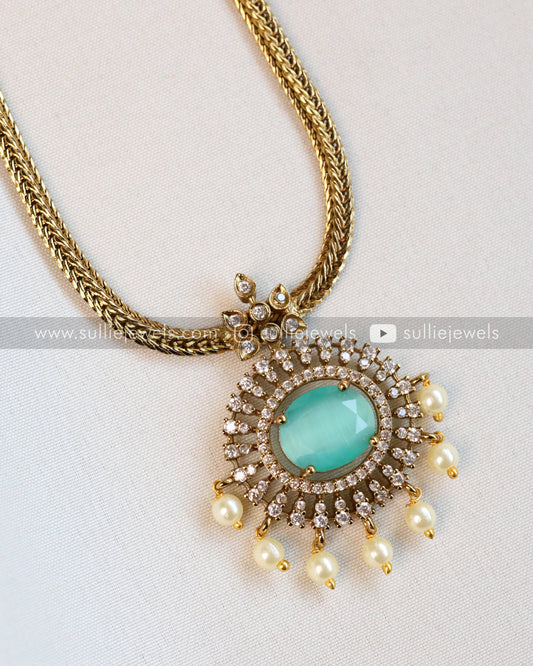Ruby Peacock Stone Mint Beads Necklace with Jhumka