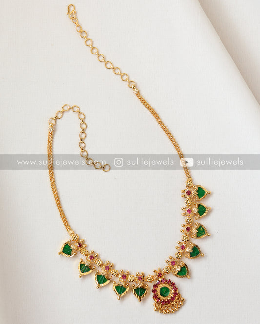 Floral Premium Ruby & White Stone Necklace with Mint beads