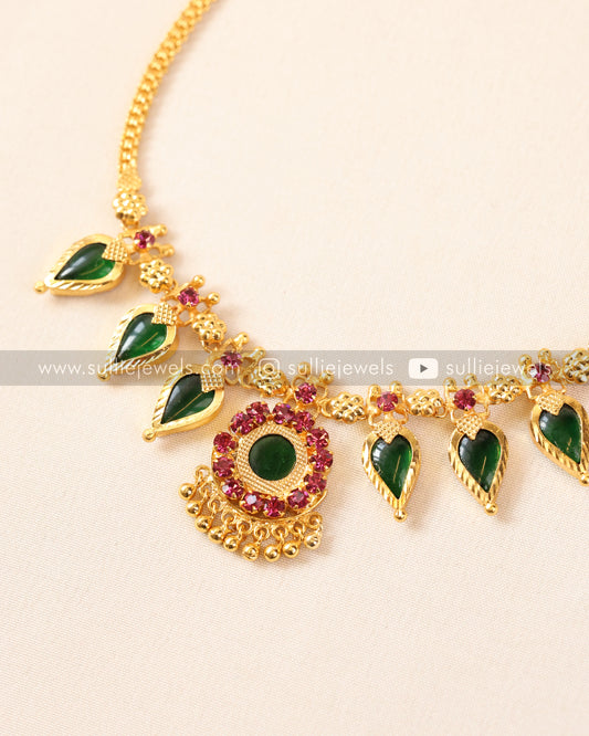 Premium Lakshmi Haram with Jhumka ( Green Beads )