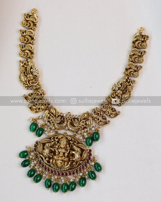 Premium Lakshmi Necklace (Green Beads) with Jhumka