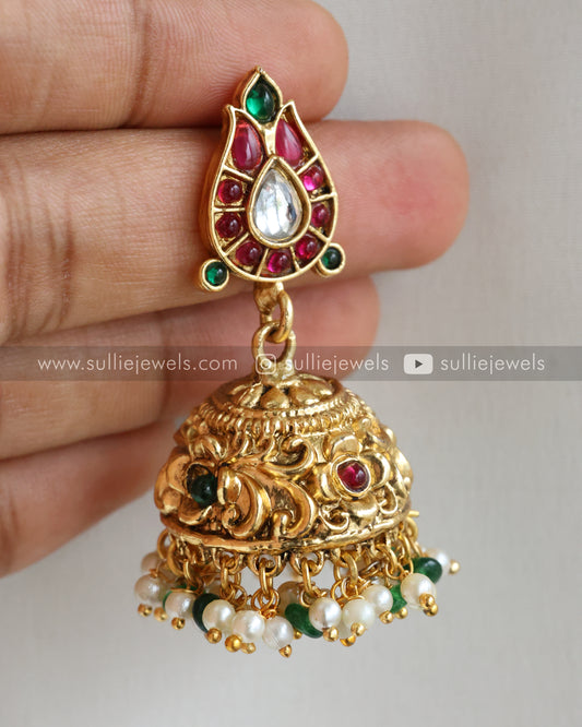 Stone Gold Jhumka with Pearl Drops
