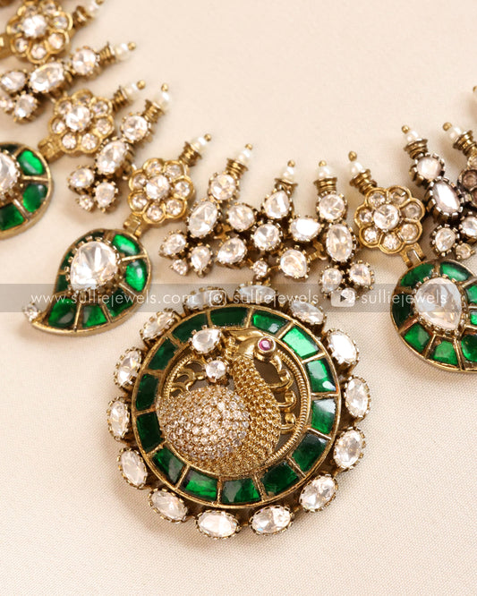 Moissanite Peacock Emerald Premium Necklace with Stud