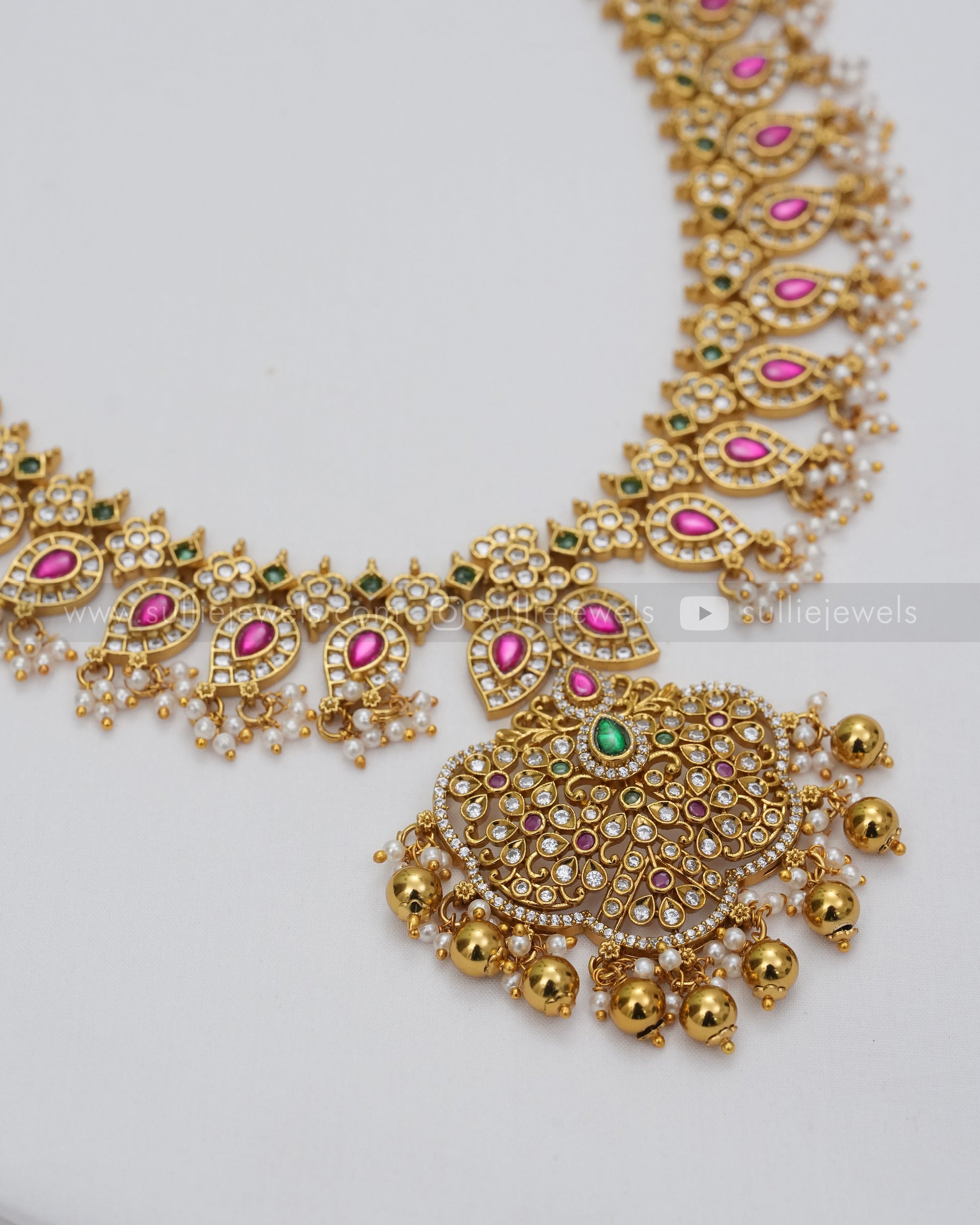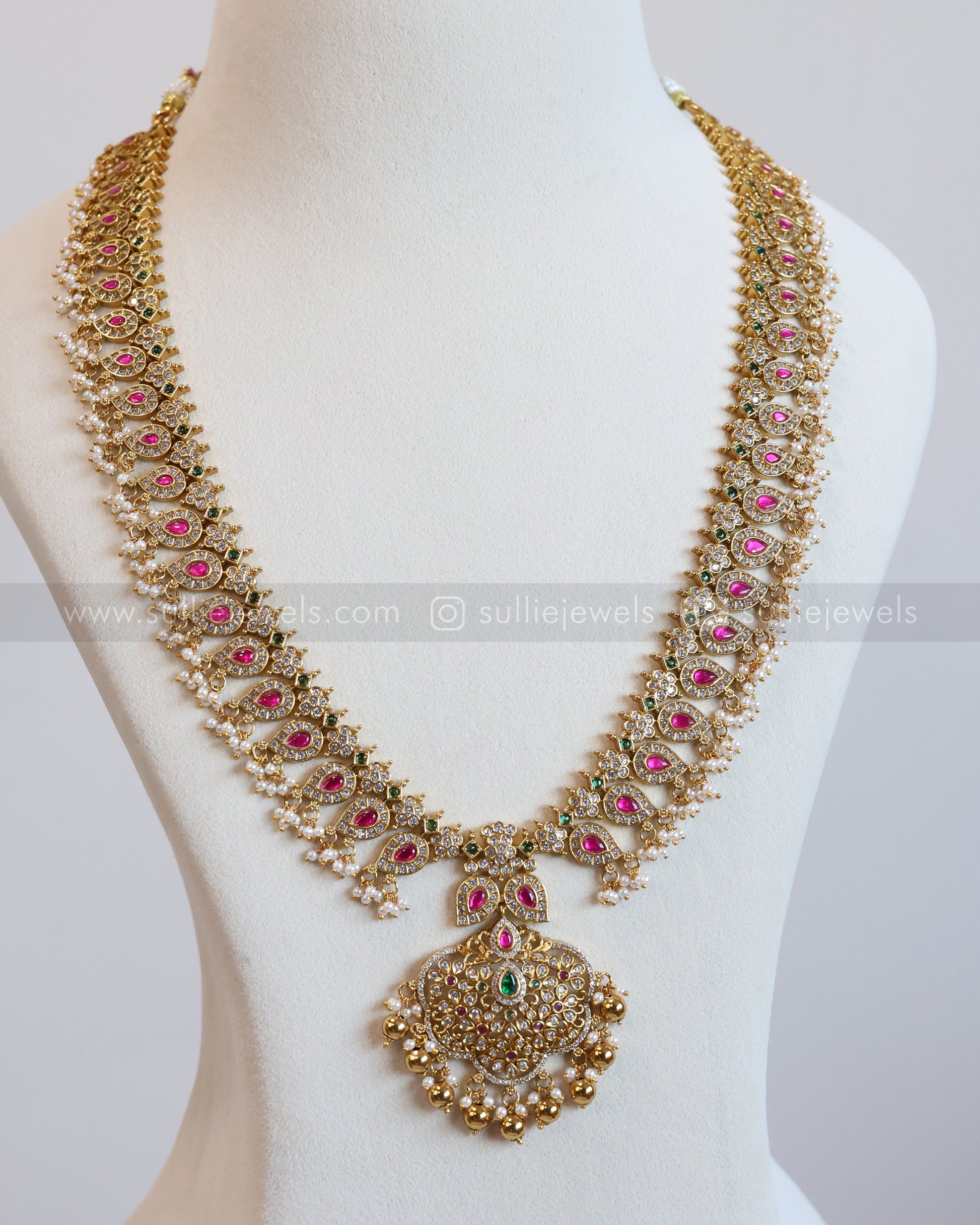 7134 - No Idol - Kemp Guttapusalu Long Chain with Earring - Gold Beads