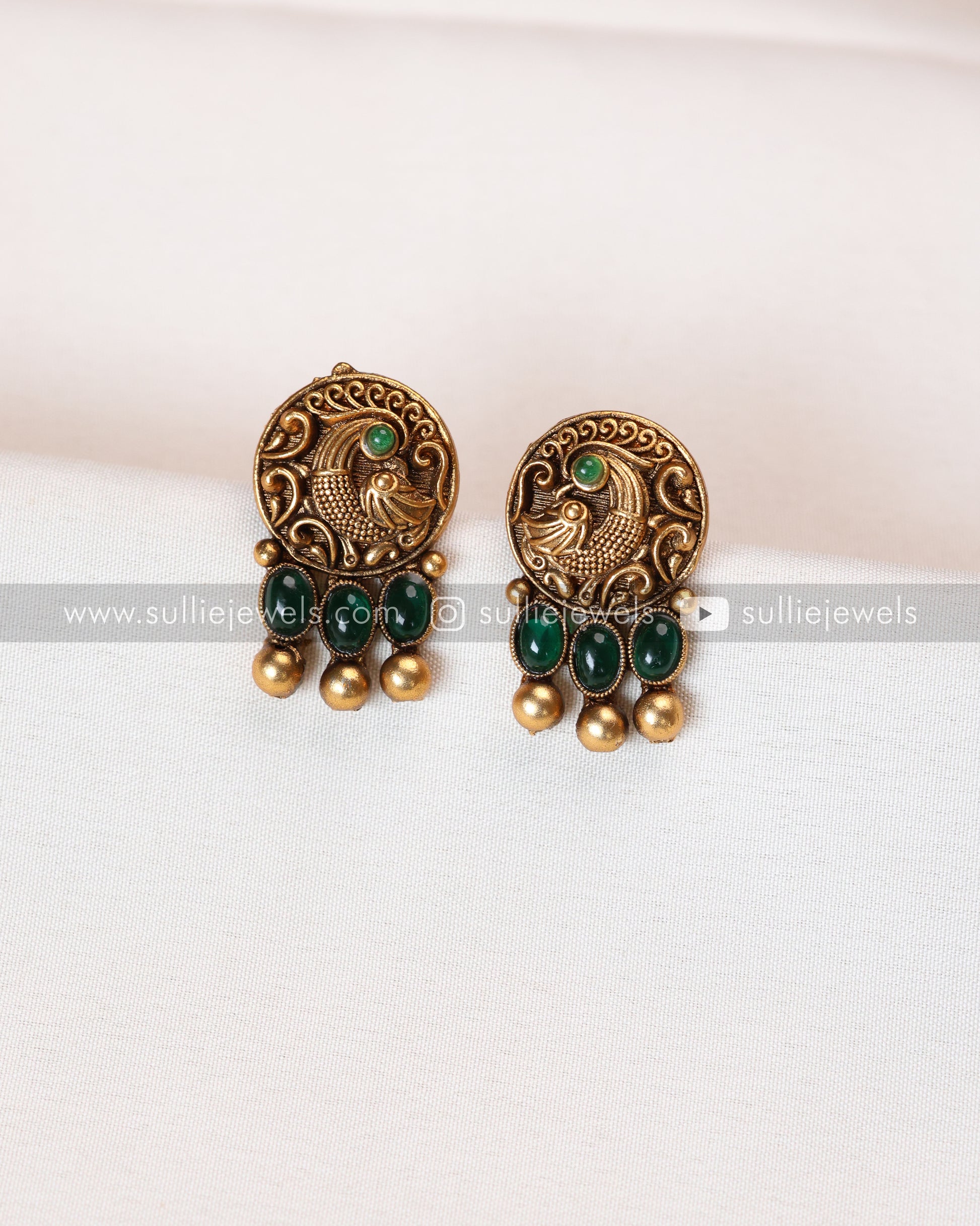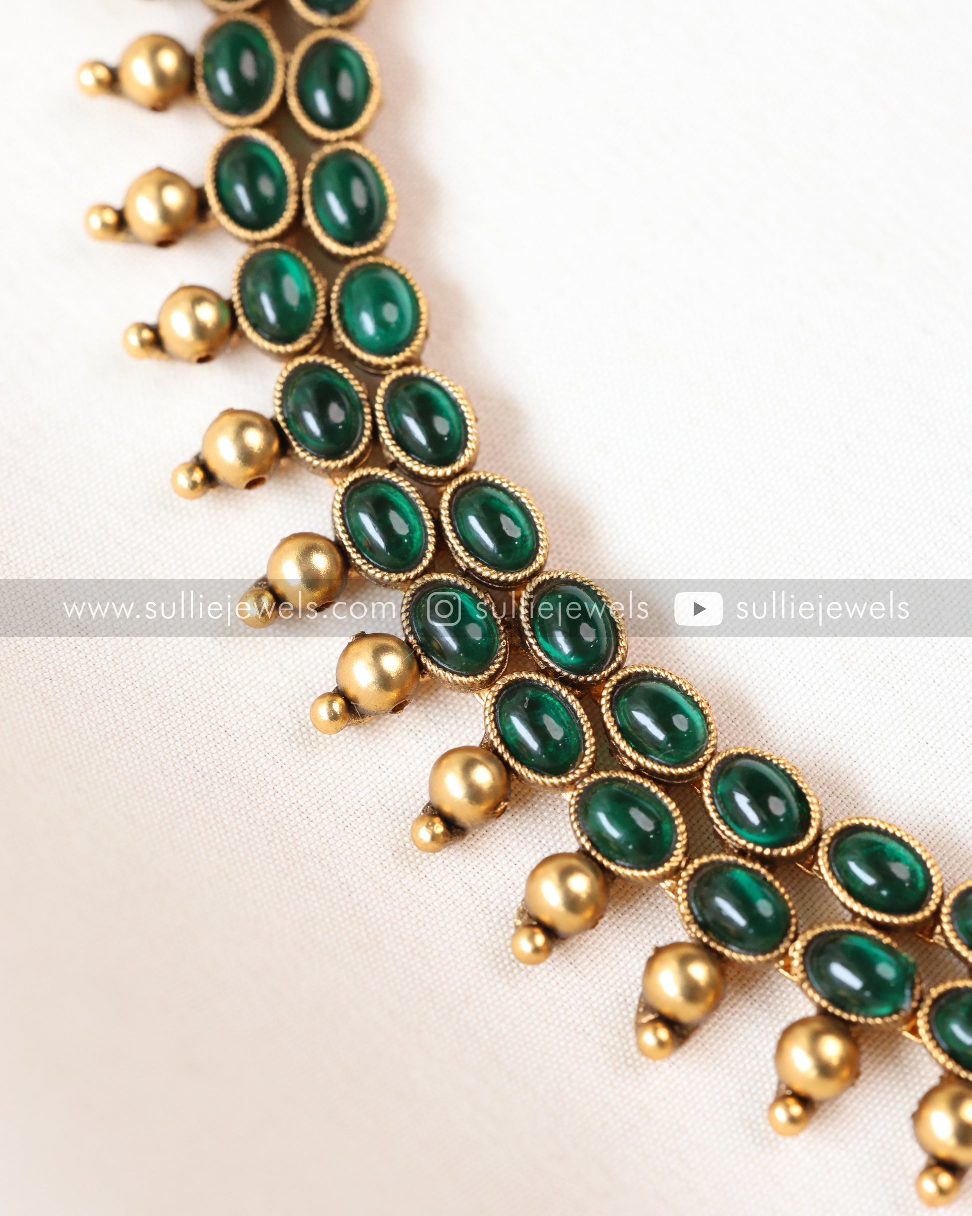 Sullie Basic - Antique Peacock Green Bubble Stone Necklace with Stud