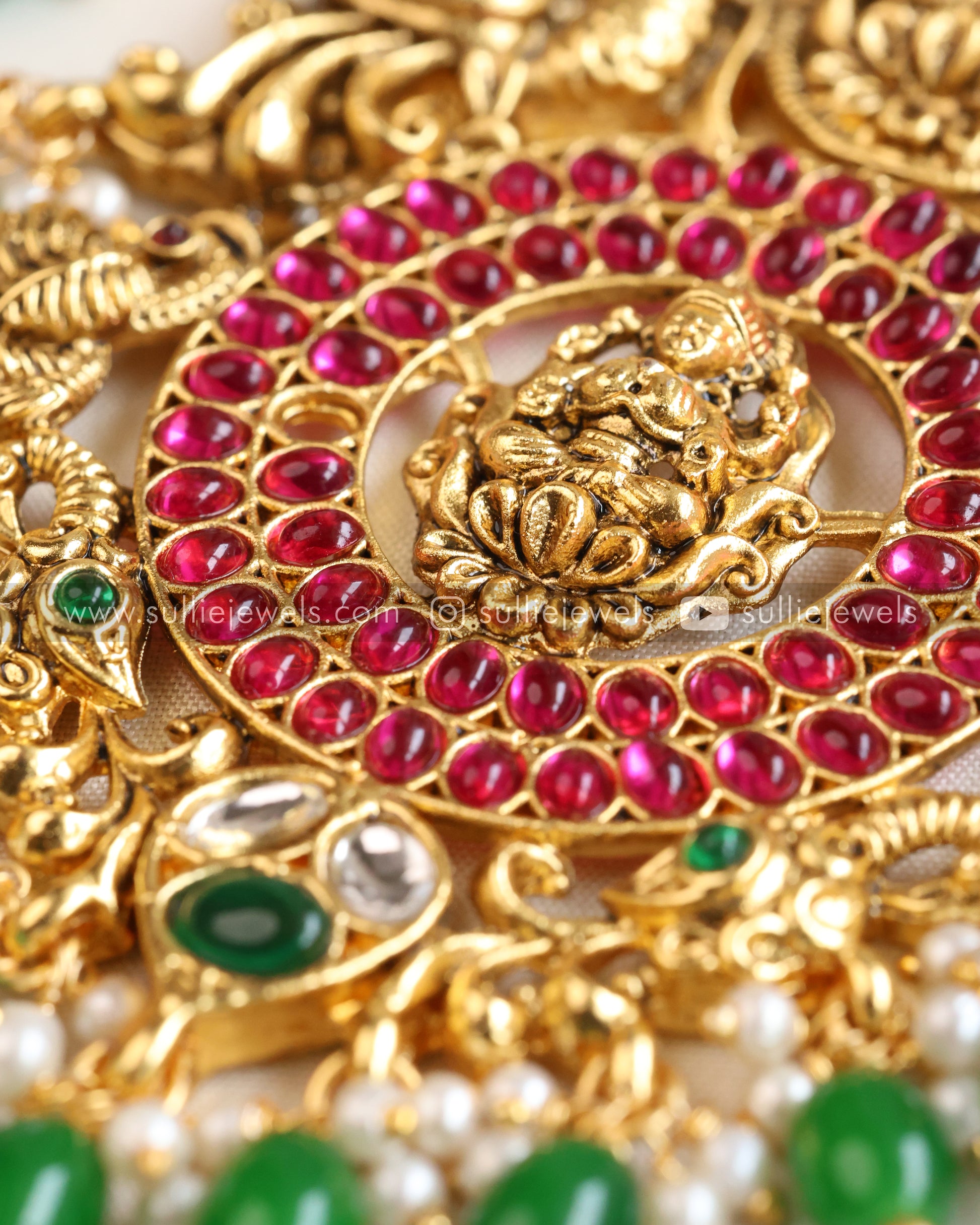 Chakra Kemp Premium Lakshmi Necklace with Earring - Green Beads