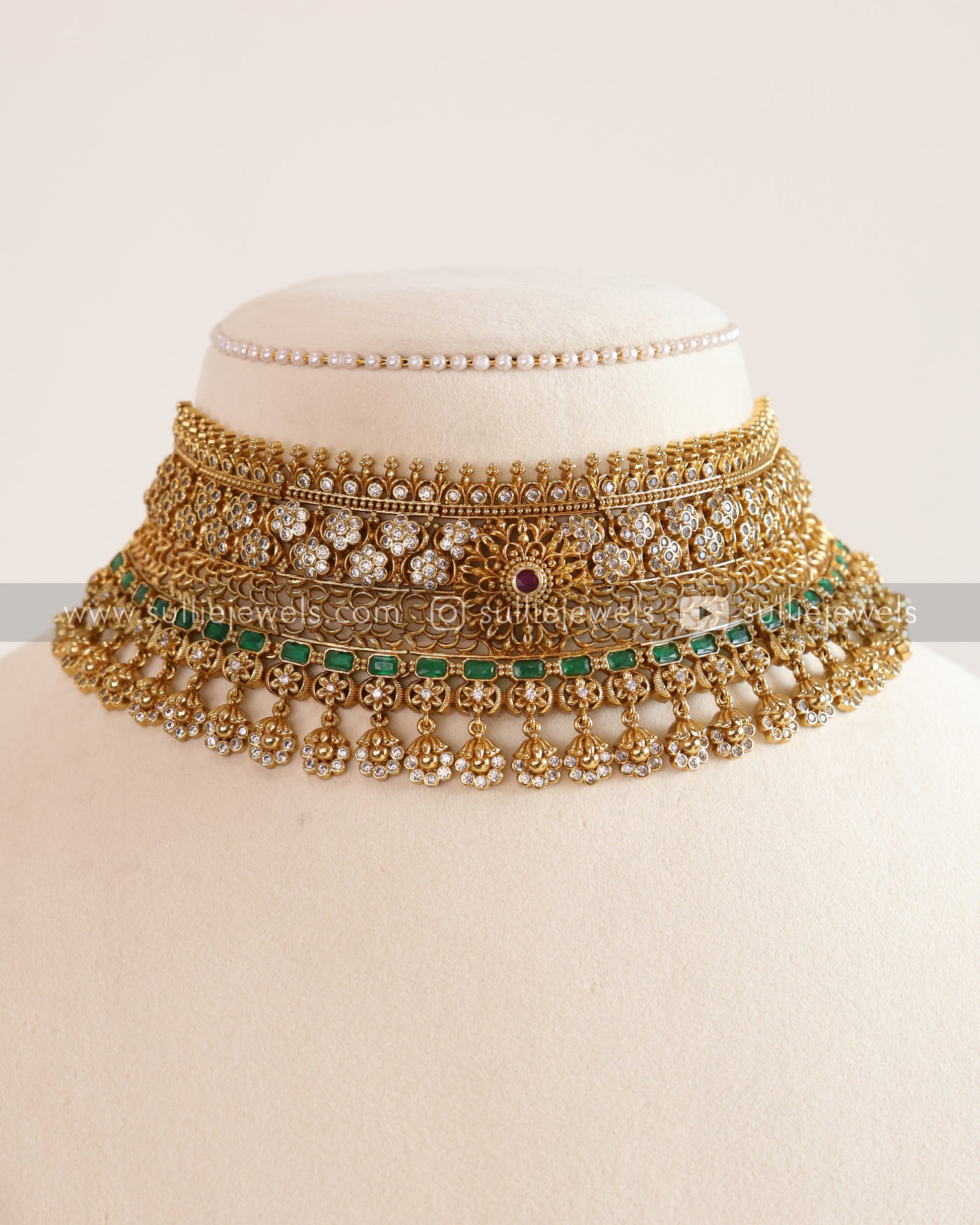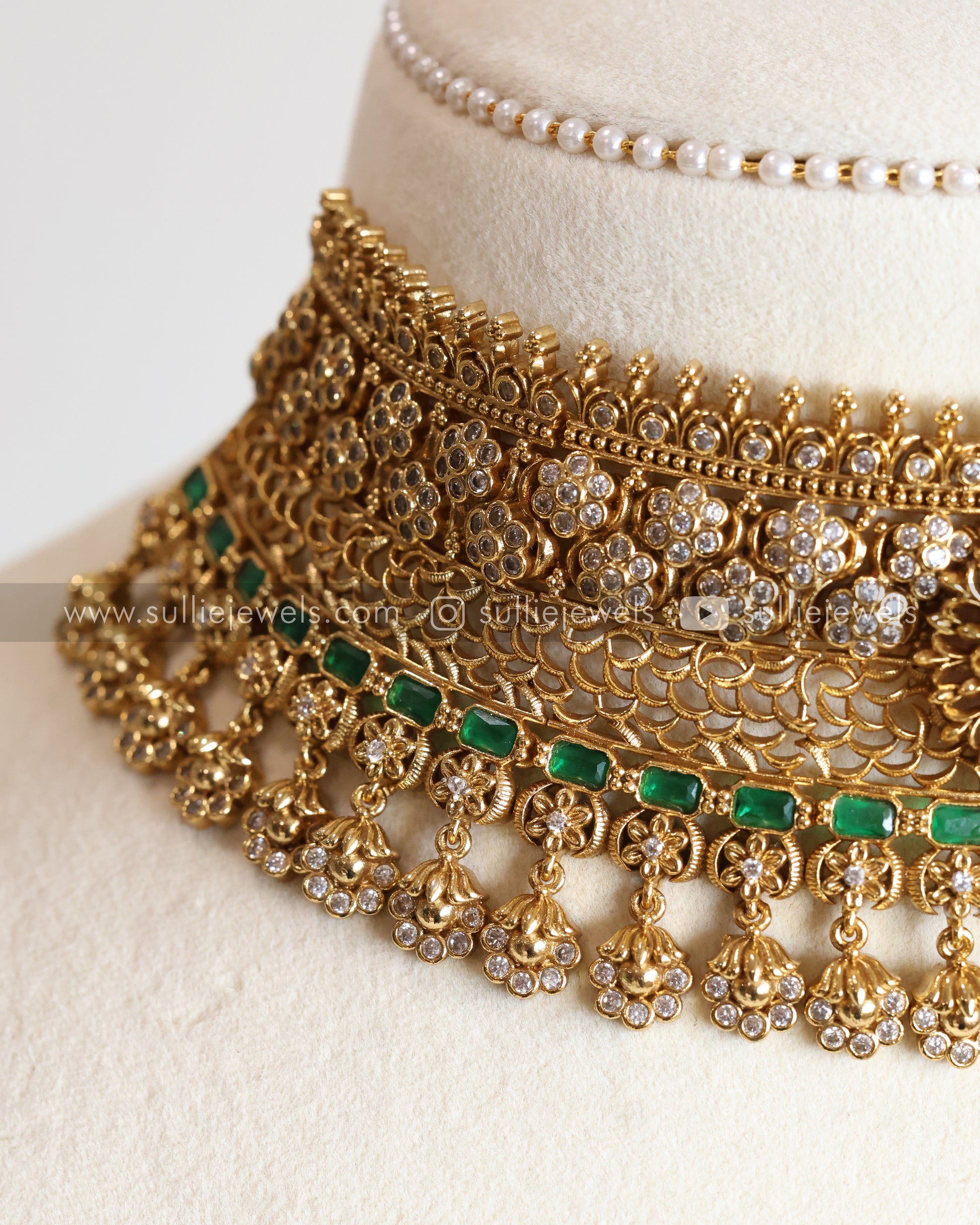 Floral Green Gold No Idol Choker with Earring