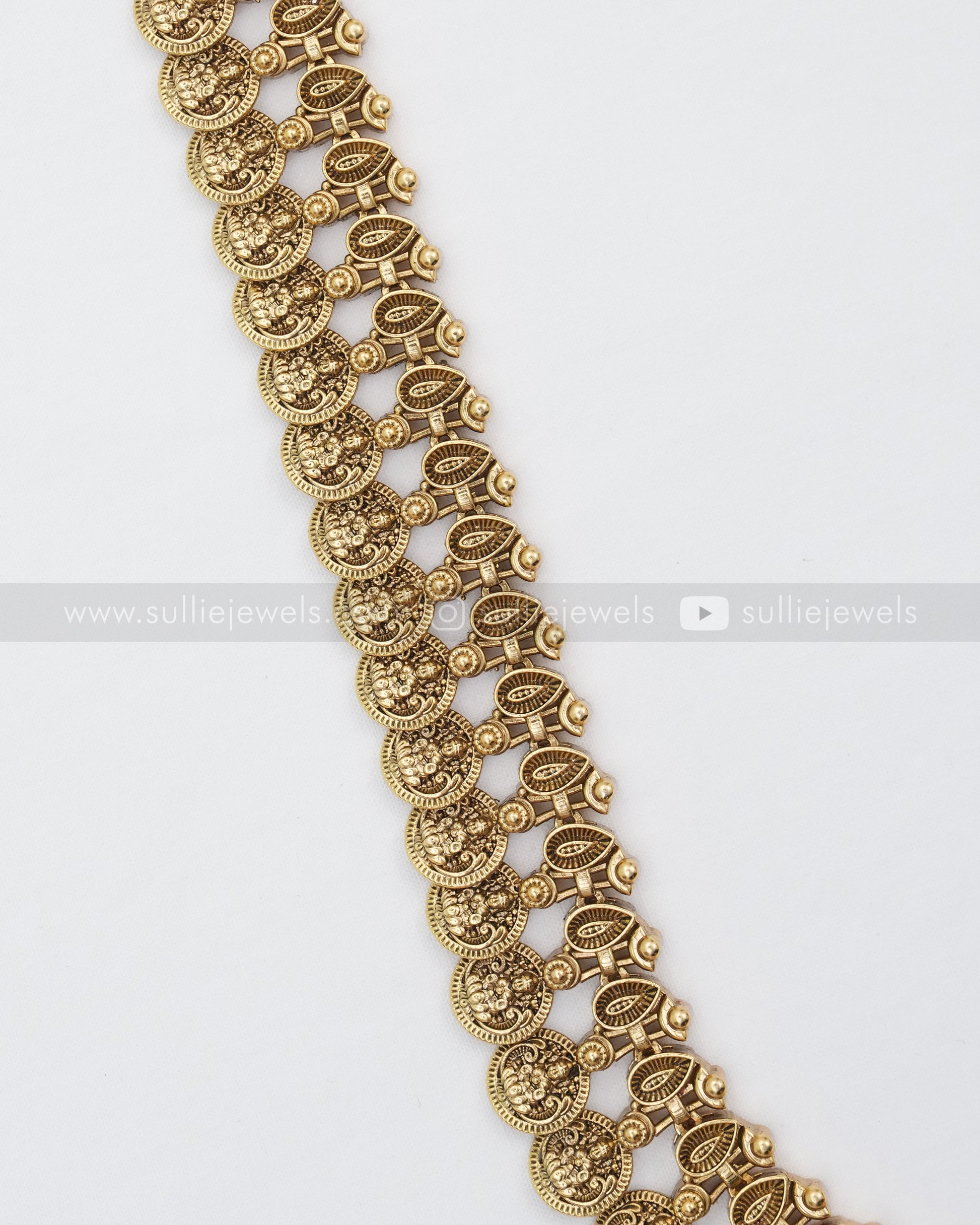 Jadau Premium Emerald Peacock Coin Haaram with Stud