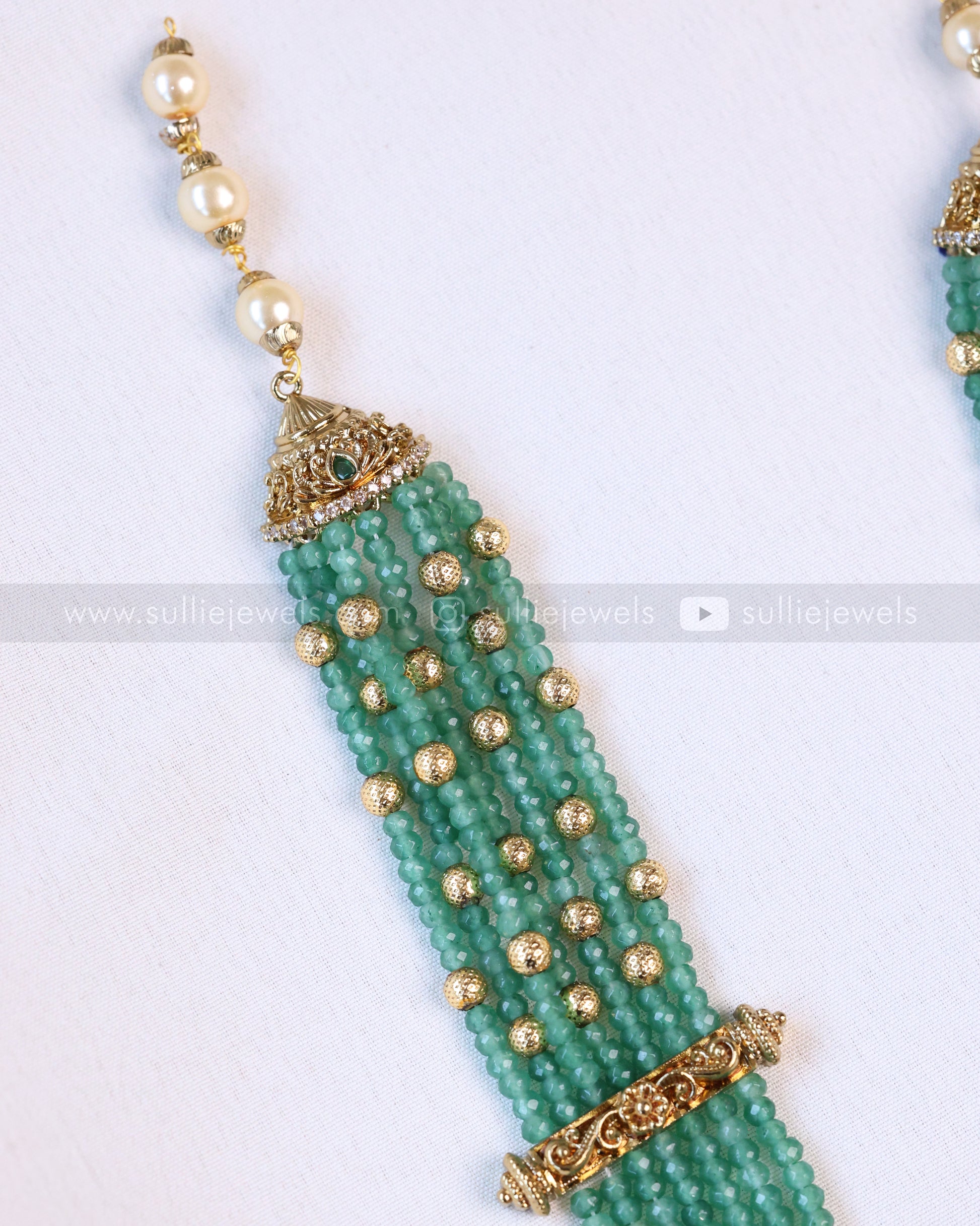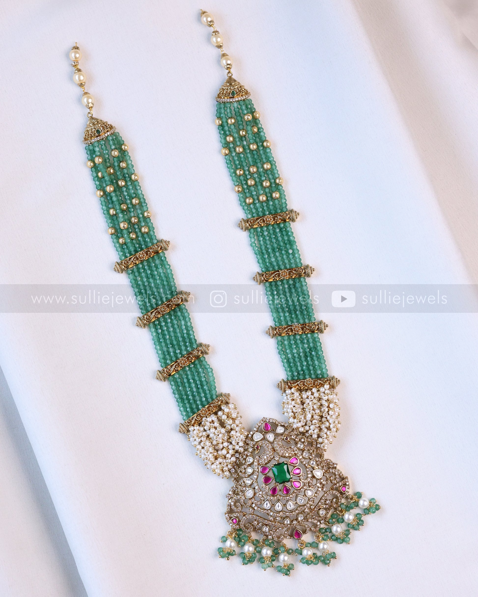7138 - Victorian Pearl Onyx Beads Long Chain / Haaram with Earring