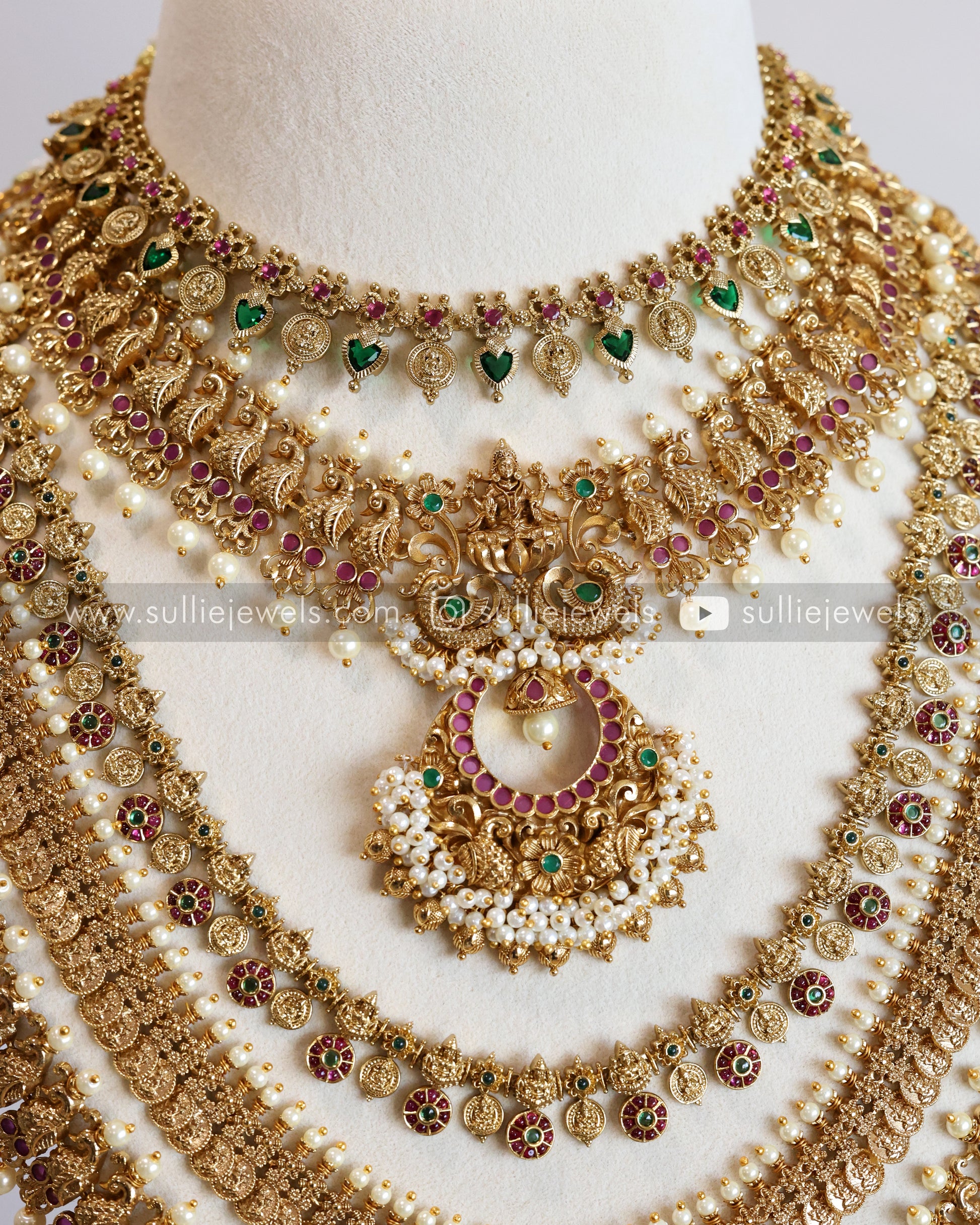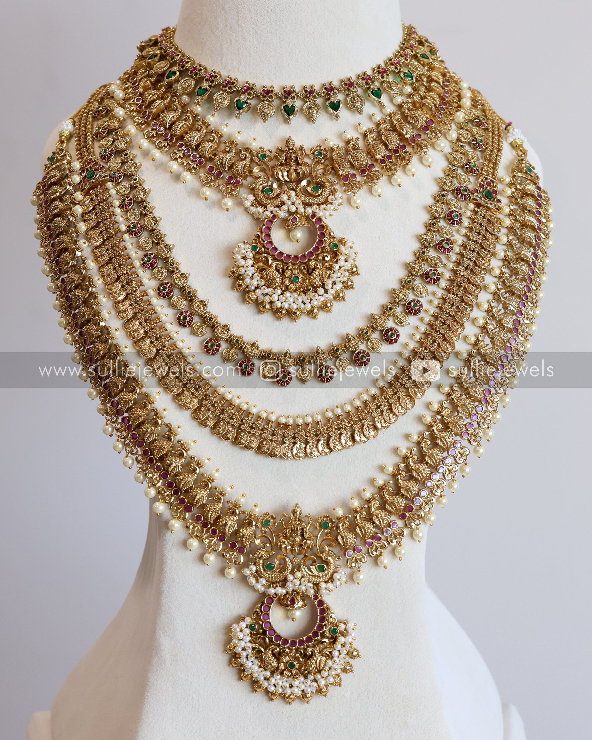Designer Pearl & Traditional Palakka Coin Bridal Combo ( 6 Piece )