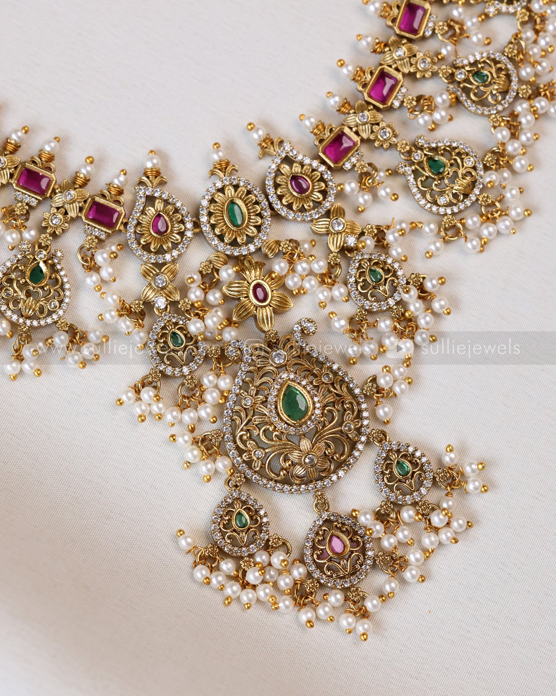 3553 - No Idol AD Raindrop Pendant Guttapusalu Hanging Necklace with Earring