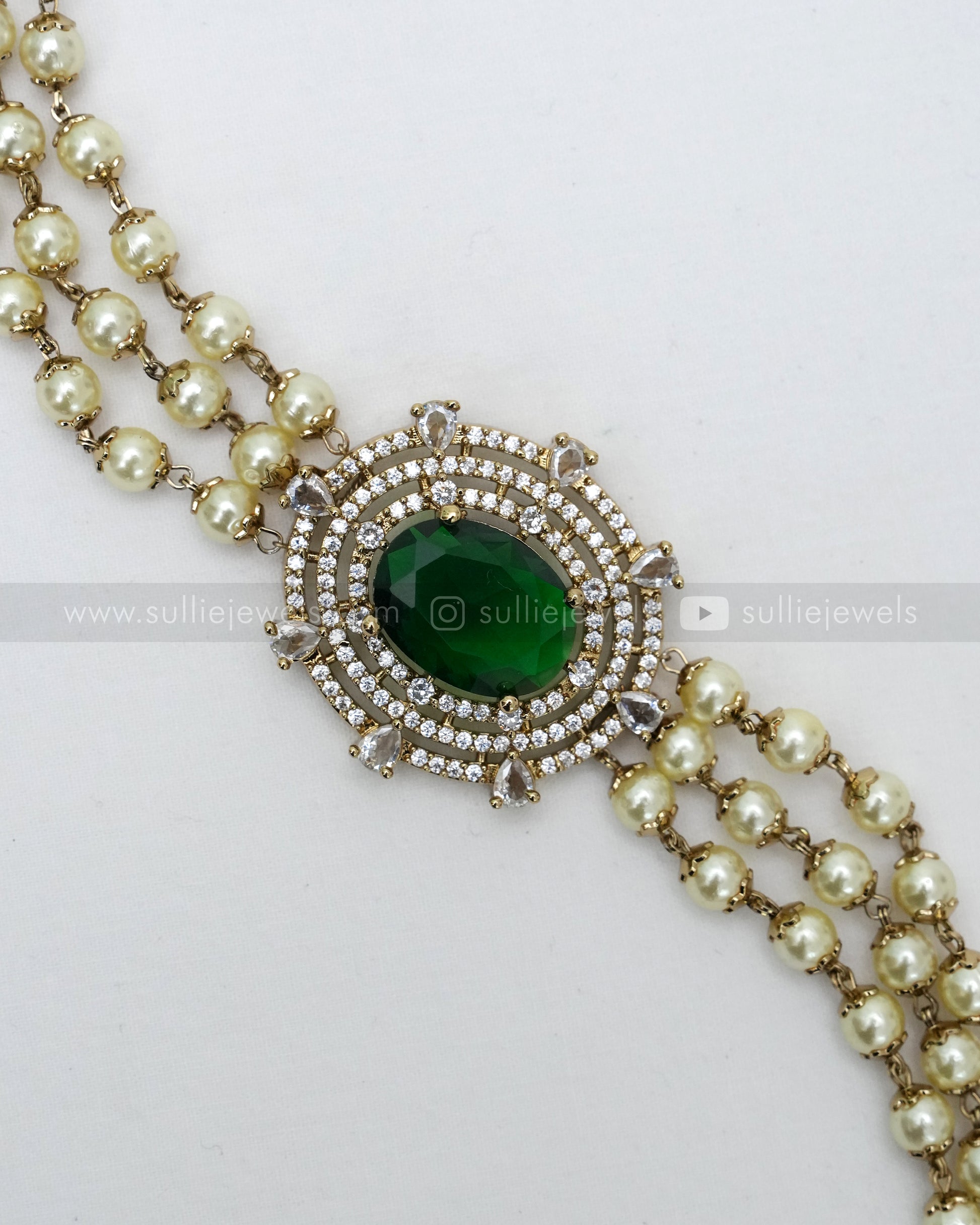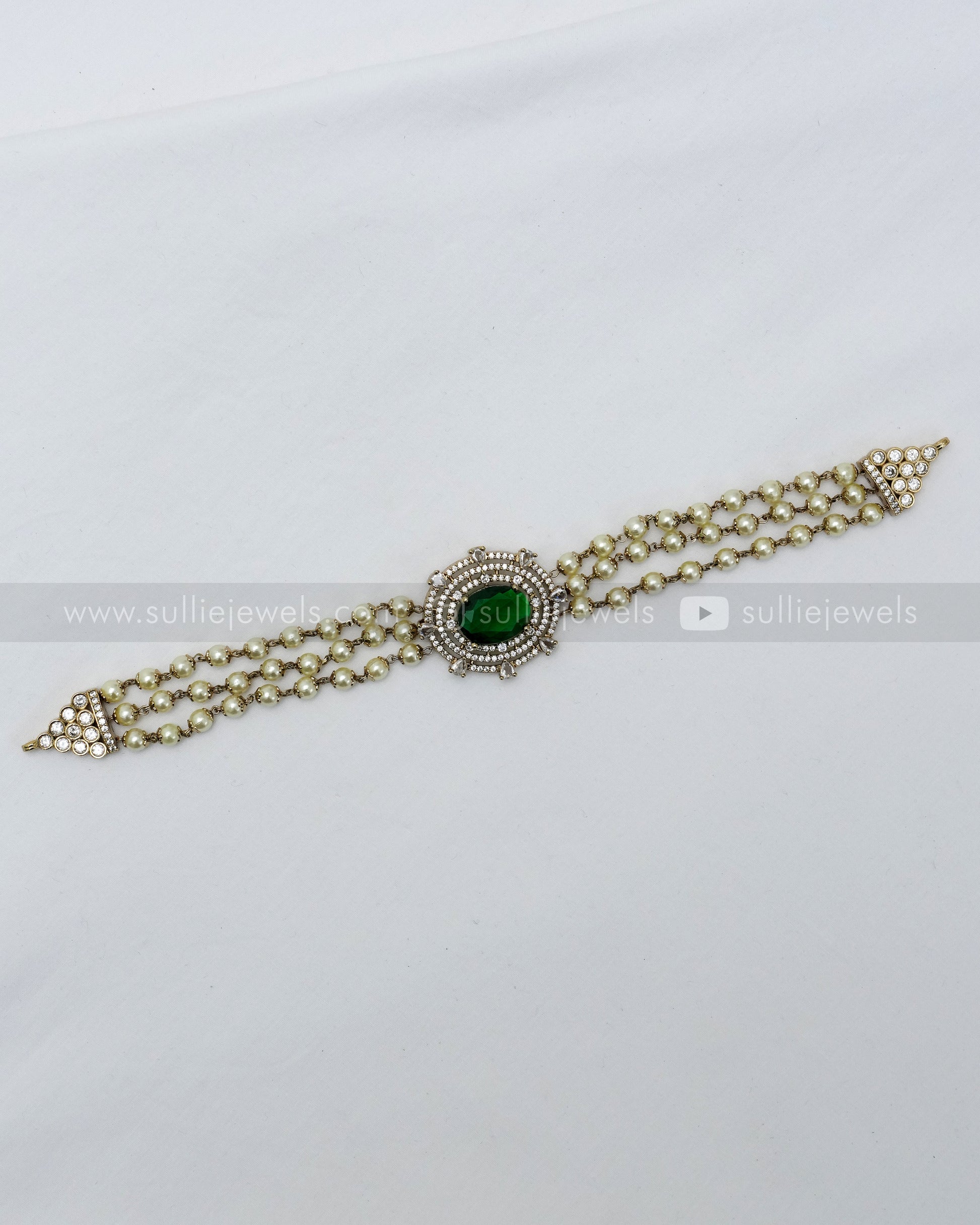 2096 - Green Stone Victorian Pearl Choker with Studs
