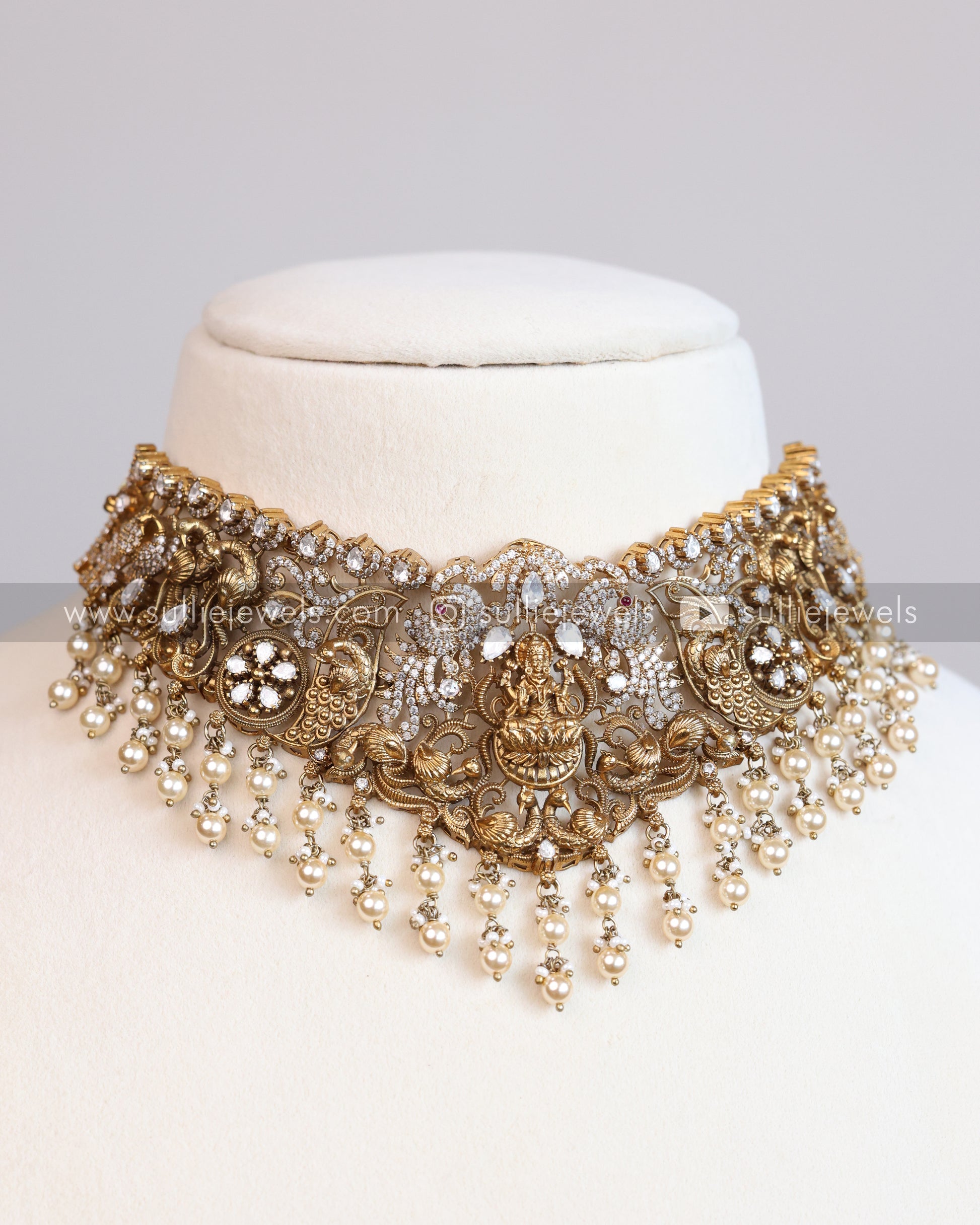 Premium Lakshmi Antique Stone Bridal Choker with Earrings