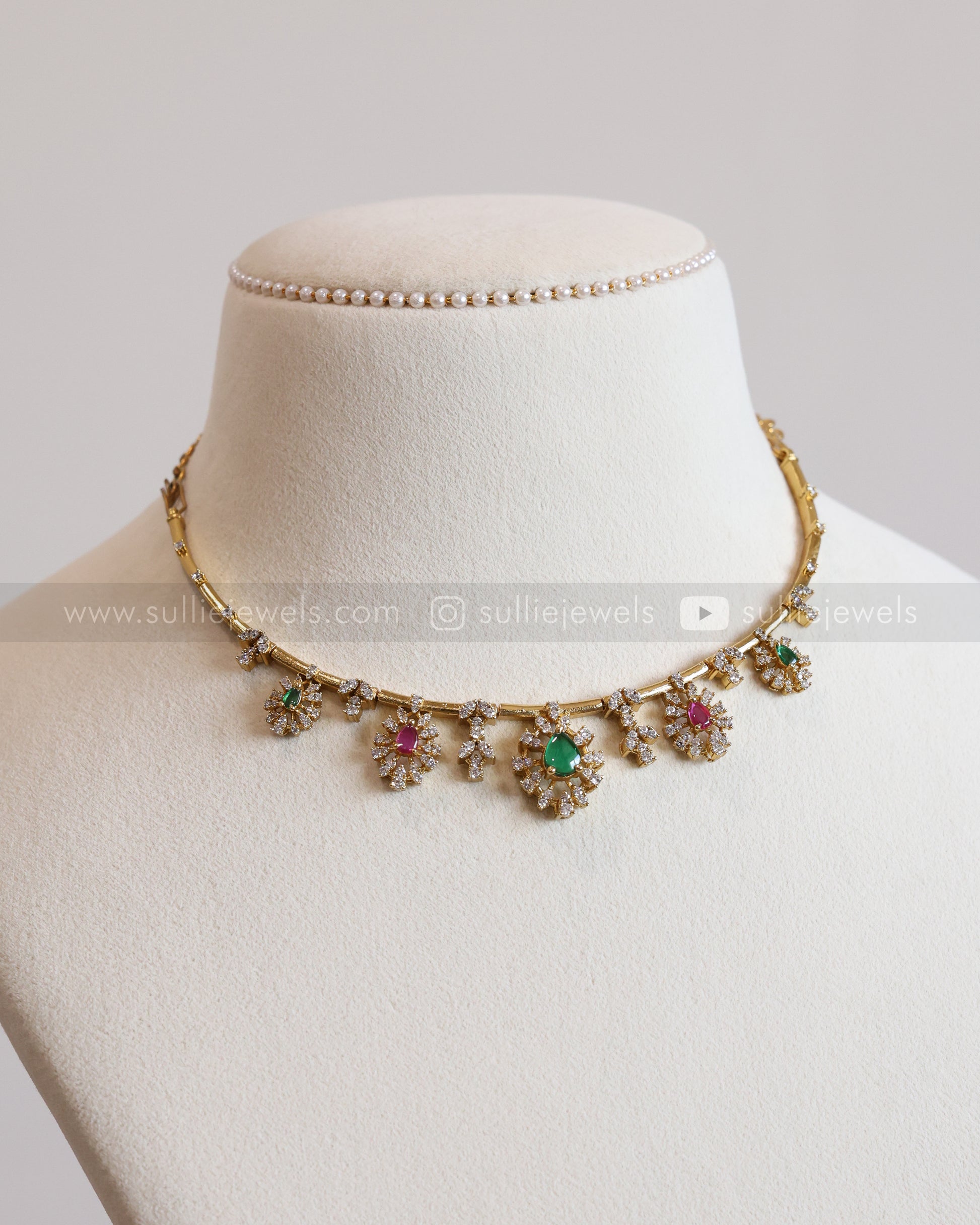 3619 - Green & Ruby AD Stone Hasli with Stud