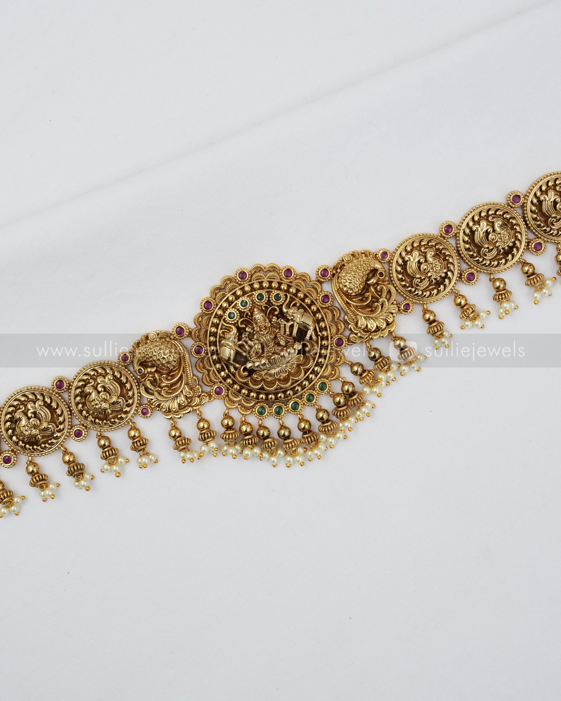 H194 - Peacock Nagas Premium Goddess Hipchain with Gold Beads