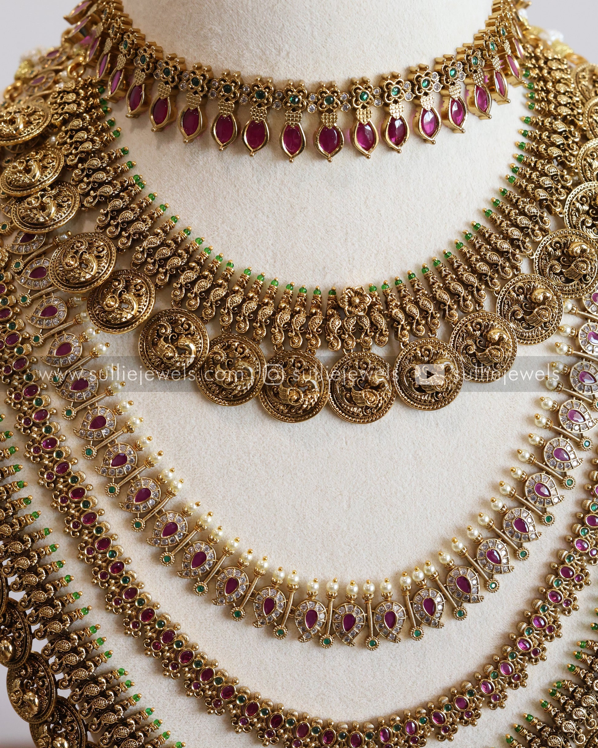 No Idol - Premium Heavy Coin Ruby Stone Bridal Combo ( 8 Piece )