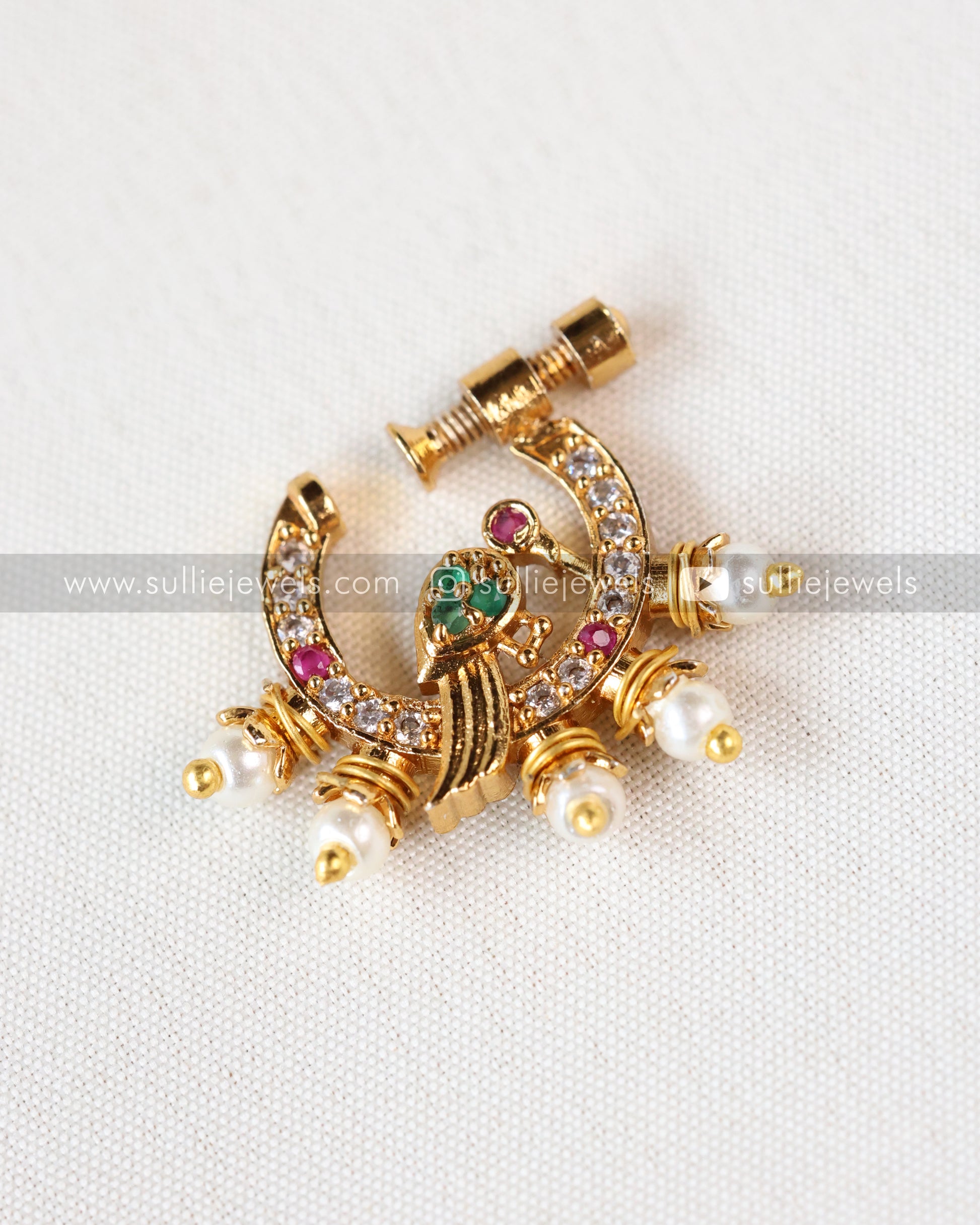 Nose Screw Pin - No Piercing Required - Peacock Pearl